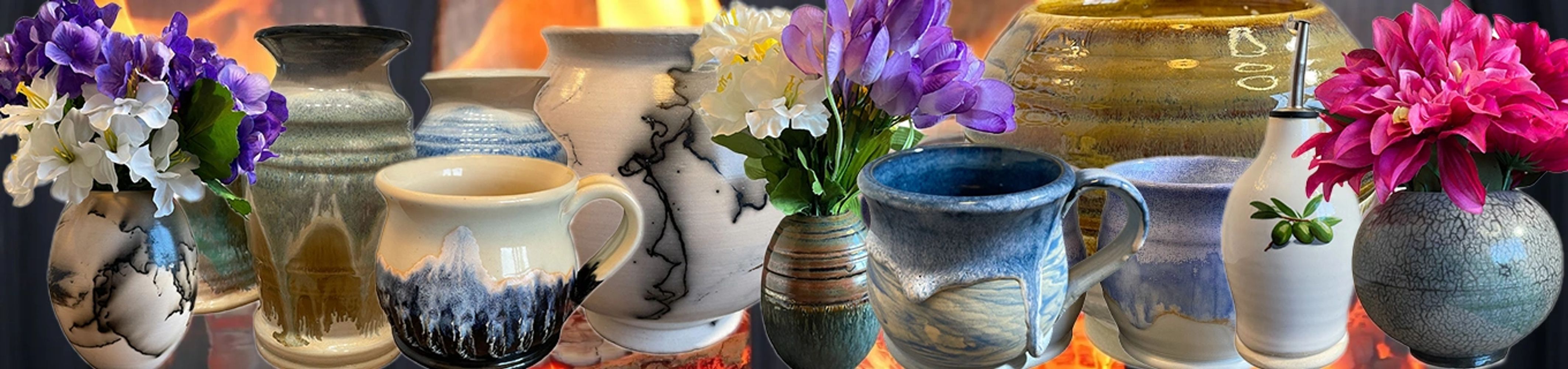 Kiln Fire Clay is a small studio that focuses on making beautiful pottery. Our passion is functional pottery that looks wonderful as well as low fire pottery such as horsehair pottery and raku.